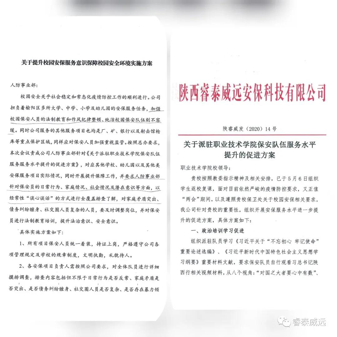 校園安全關(guān)乎社會(huì)穩(wěn)定和常態(tài)化疫情防控工作的順利進(jìn)行,我公司負(fù)責(zé)榆陽(yáng)區(qū)多所大學(xué)、中學(xué)、小學(xué)及幼兒園的安全保衛(wèi)工作,加強(qiáng)校園保安人員的法制教育和作風(fēng)紀(jì)律整頓、純潔校園保安隊(duì)伍刻不容緩。會(huì)后,各分隊(duì)及時(shí)組織隊(duì)員認(rèn)真學(xué)習(xí)文件精神,切實(shí)將校園安保工作落到實(shí)處。