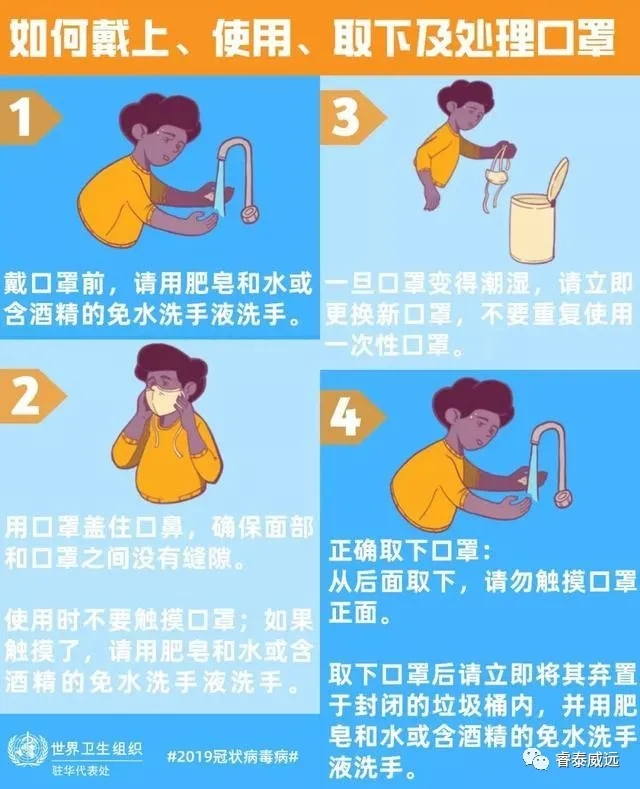 其次,如果戴了口罩卻摘下口罩隨地吐痰,戴了口罩但是打噴嚏或咳嗽時摘了下來,或者沒有洗手就觸碰孩子的口罩、臉或者頭發(fā)的話,你甚至可能成為病毒的傳播者。
