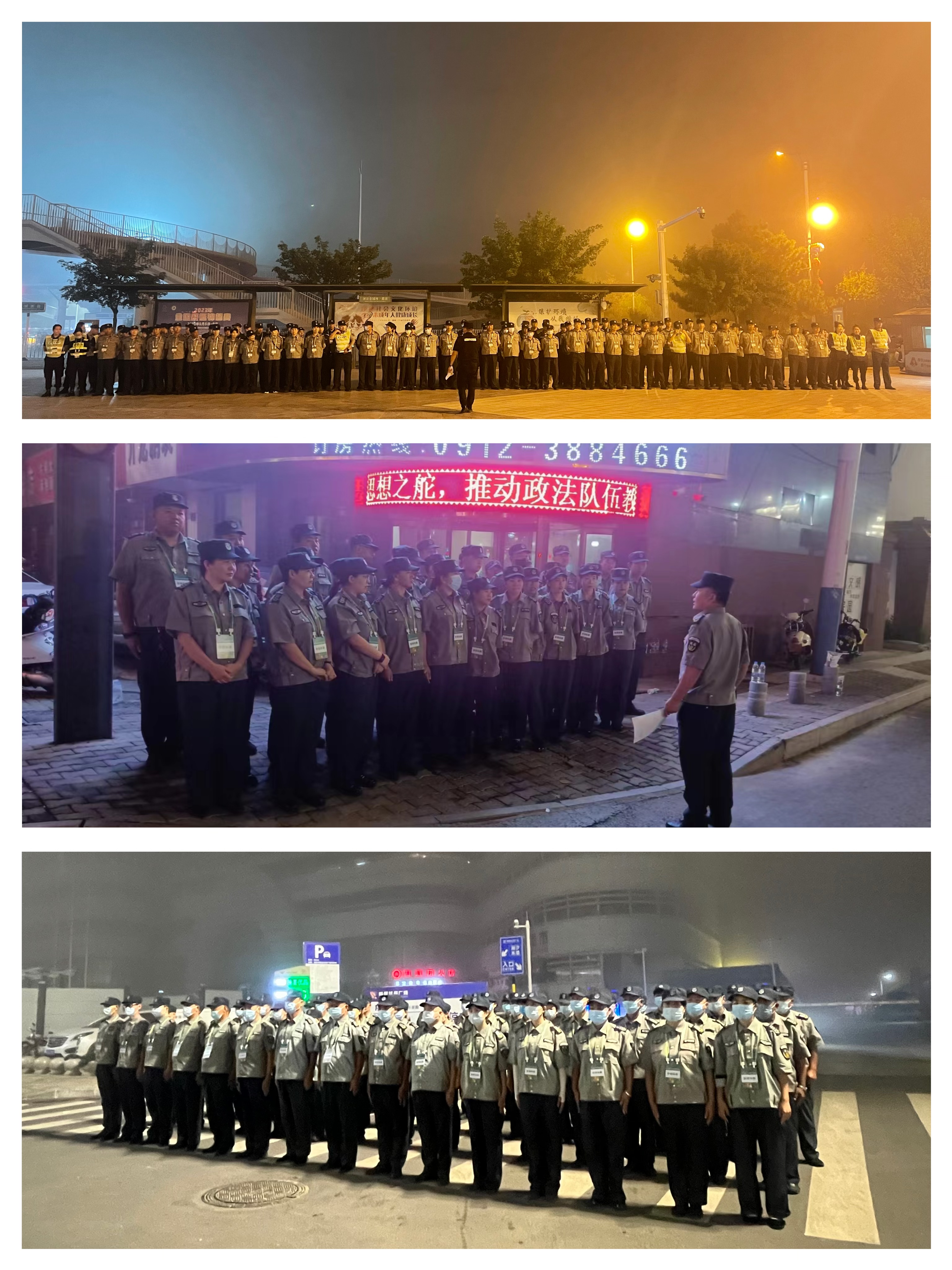 凌晨4點(diǎn),天還未亮,霧氣籠罩著整座城市,我公司240余名保安隊(duì)員已分別在三個(gè)集合點(diǎn)集結(jié)完畢,整裝待發(fā)。