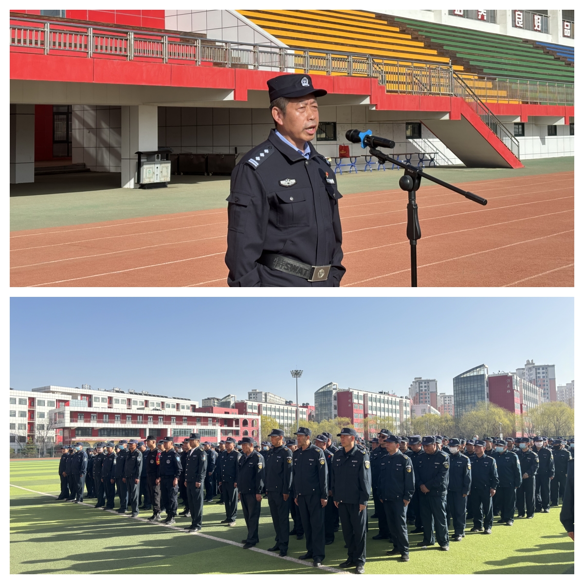 榆林市公安局榆陽(yáng)分局治安大隊(duì)正科級(jí)偵查員雷陽(yáng)作動(dòng)員講話。他表示,作為校園保安人員肩負(fù)著保護(hù)學(xué)生安全的重任,思想上要高度重視,嚴(yán)格認(rèn)真對(duì)待此次培訓(xùn),有效提升戰(zhàn)斗力,在日常工作中要善于發(fā)現(xiàn)校園周邊存在的安全隱患并及時(shí)解決。