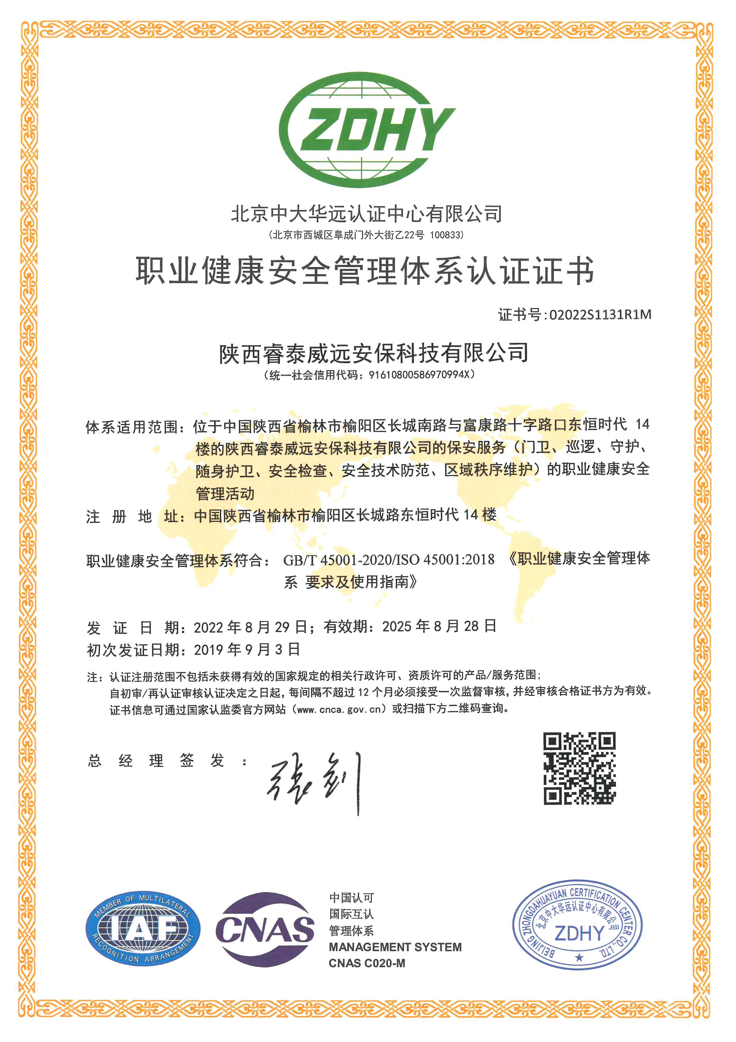 職業(yè)健康安全管理體系認(rèn)證證書(shū)