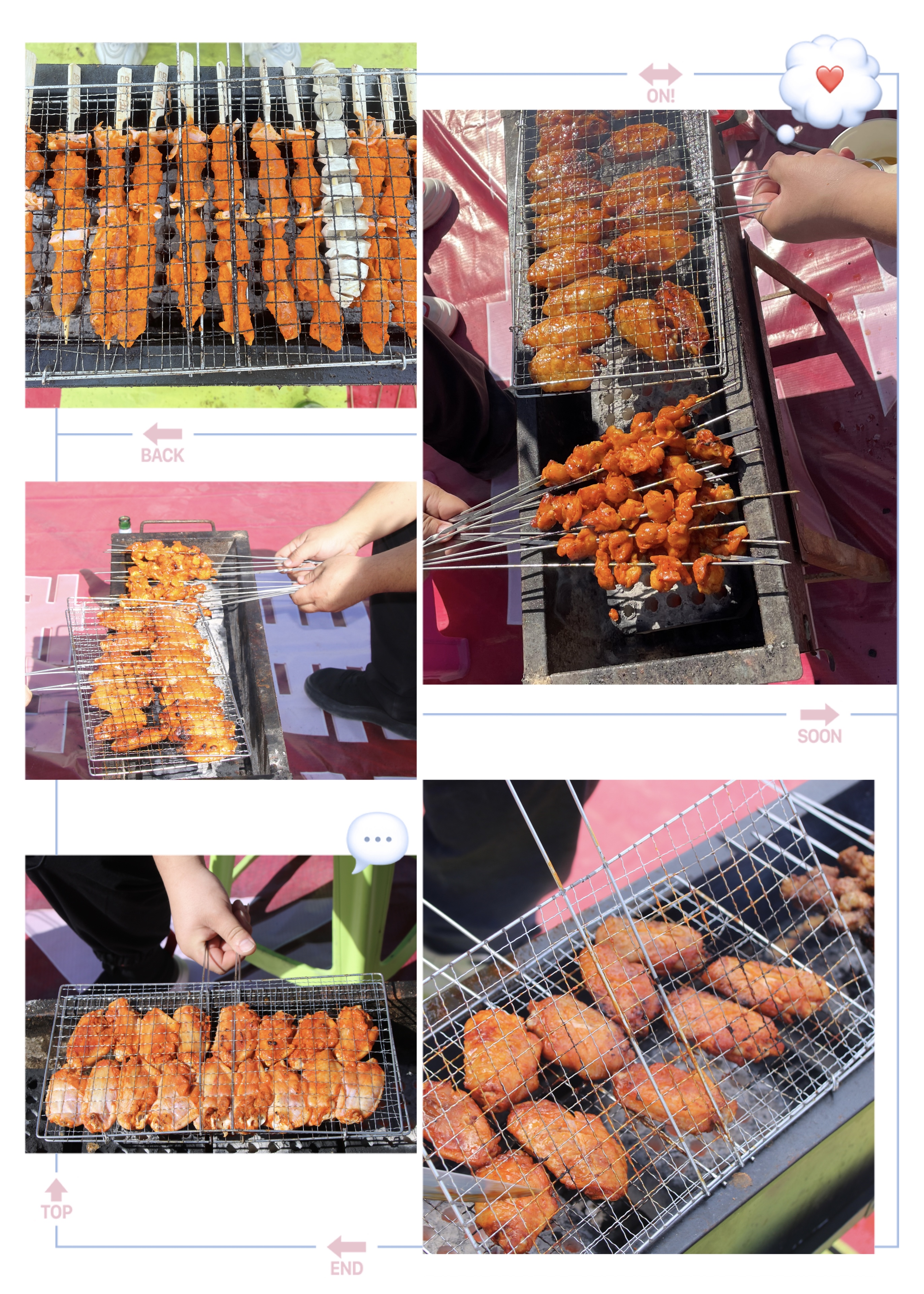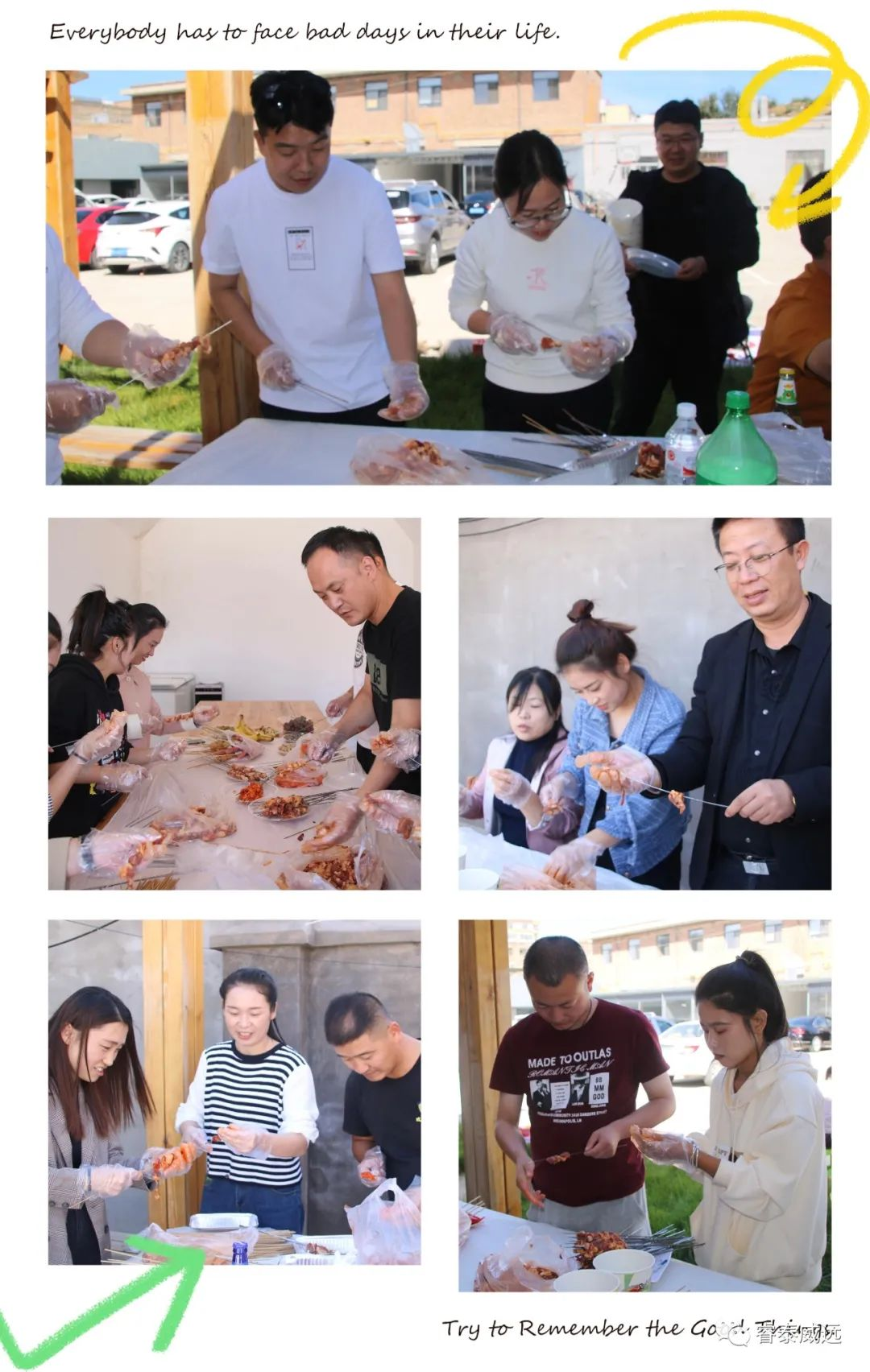 大家自覺地忙活起來,各個變身燒烤小能手,齊心協(xié)力,分工搭配,烤出一串串美食。