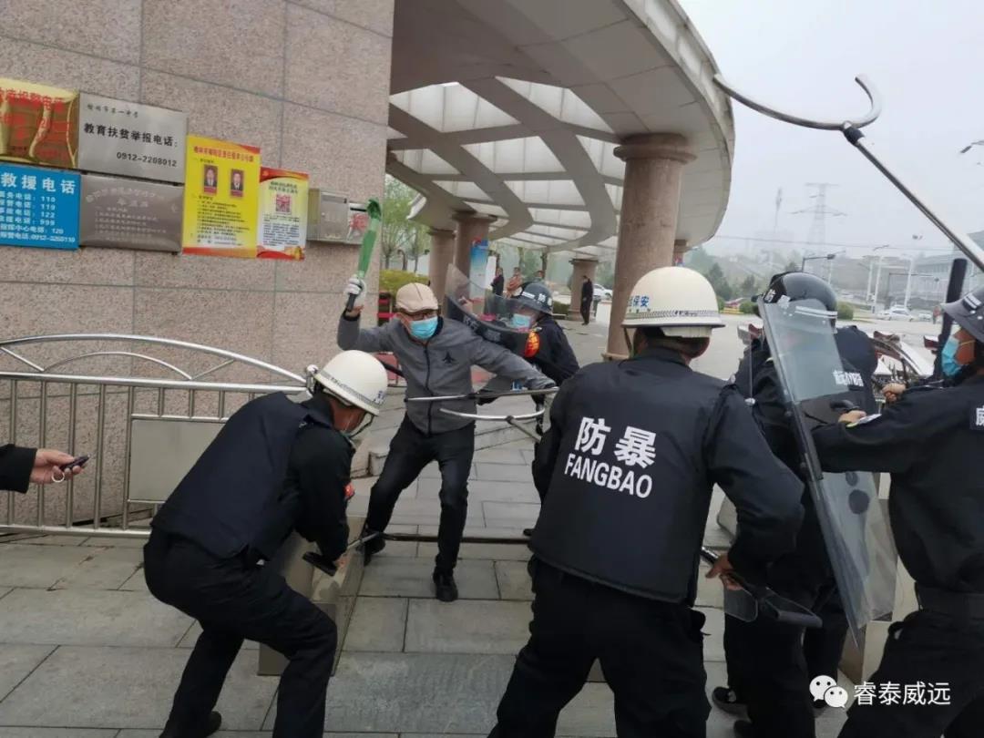 應(yīng)急演練為提升公司駐城區(qū)各學(xué)校項(xiàng)目保安人員對(duì)暴力恐怖事件的應(yīng)急處置能力,維護(hù)平穩(wěn)的教學(xué)秩序、保障教學(xué)工作的正常開展、保護(hù)師生的人身財(cái)產(chǎn)安全,堅(jiān)持“安全第一、預(yù)防為主”的工作方針,5月13日公司駐榆林市第一中學(xué)分隊(duì)保安人員有序組織開展反恐防暴演練?,F(xiàn)場(chǎng),一中隊(duì)中隊(duì)長(zhǎng)趙玉忠向保安員仔細(xì)講解了反恐防暴用具的正確使用方法,以及如何在與“歹徒”對(duì)抗的過(guò)程中做好自我防范以及制服“歹徒”。