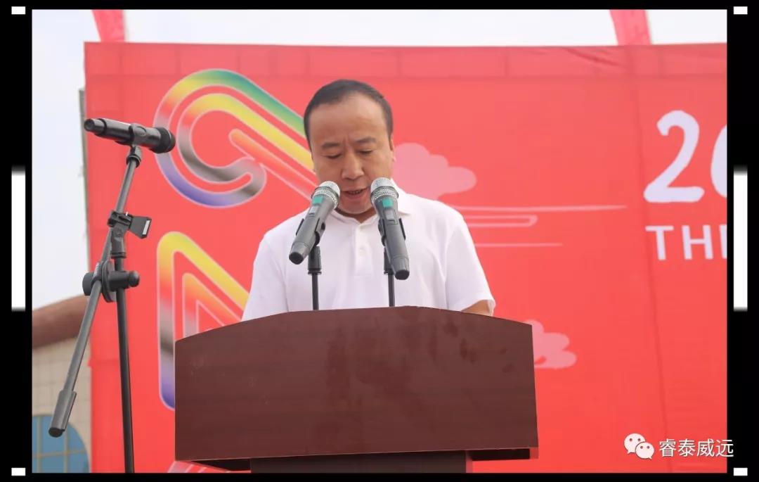 榆陽區(qū)教育局黨委書記、局長尹增崗致開幕辭,主席臺領(lǐng)導4人共同鳴槍開跑。